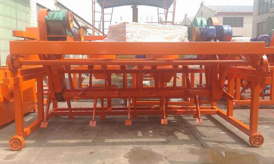 液壓升降有機肥翻拋機發酵制作生物有機肥的過程:地面條堆、用地面翻堆機,或用好氧槽式發酵翻拋機,在發酵槽內根據配方比例對方有機物及菌種;均勻撒入菌劑、翻堆發酵達到升溫、處臭、腐熟、殺滅雜菌草籽;發酵7-12天、根據各地氣溫不同翻堆次數多少一不一樣;完全發酵腐熟、出池(地面式直接用鏟車收堆);用分級篩進行粗細篩選,(篩選好的粉狀肥就可以直接出售了);把篩選出的大塊用粉碎機粉碎后返回分級篩;把所需微量元素用預混機進行混合;用造粒機進行造粒;送入烘干機和冷卻機;自動包裝機包裝出售。