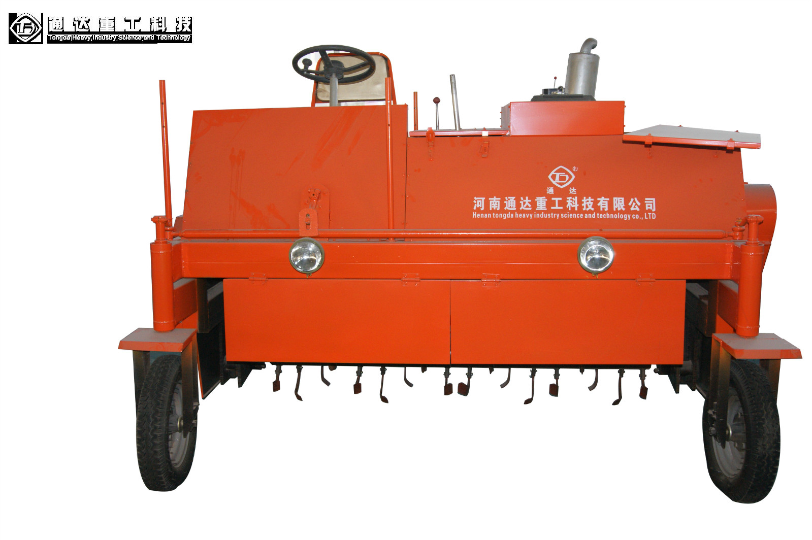 自走式翻堆機采用四輪自行走式,由一人操控應用防滑輪胎,行走時整車騎跨在條形堆上,車過后形成新的條形堆,前后安裝擋板,可防止翻堆中物料飛散。該機可多種場合作業,在物料發酵后期還具有破碎功能,整體結構剛性好,性能可靠。